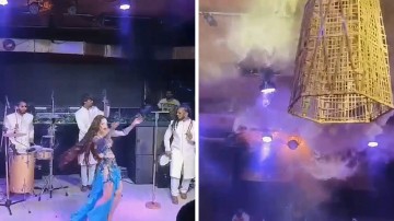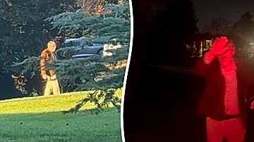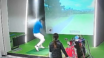 CCTV: Golfer hits the ceiling of indoor simulator causing sprinkler to burst open