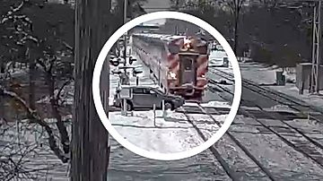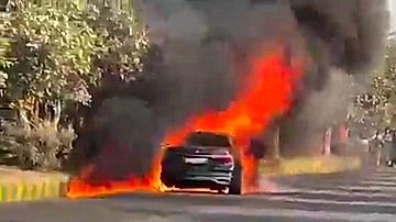 Un conductor queda atrapado en un auto en llamas y es salvado por un oficial