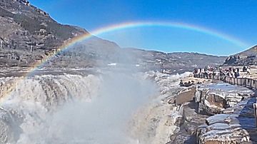 Double rainbows and icicles transform China's Yellow River into a winter spectacle