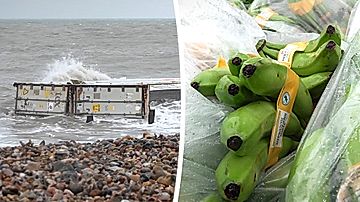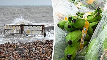 バナナでいっぱいのコンテナが海岸に漂着、イギリス