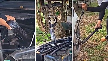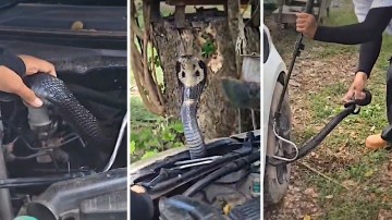 車のエンジン内部にコブラ出現.....プロが捕獲する