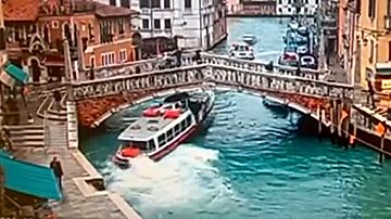 Venezia, barca urta un ponte storico durante una manovra complicata