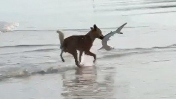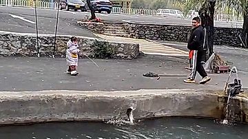 Έκπληκτος ψαράς παρακολουθεί αγριόσκυλο να κλέβει την ψαριά του