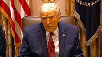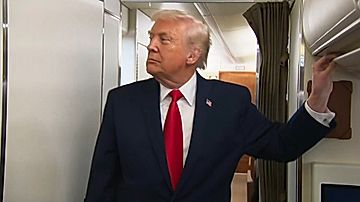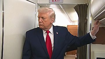 Trump es interrumpido por la puerta del baño durante una reunión informal en el Air Force One