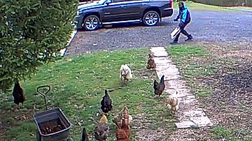 Un repartidor de Amazon se enfrenta a un “ejército” de gallinas