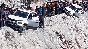 Buenos samaritanos salvan a un auto al borde de un acantilado en India